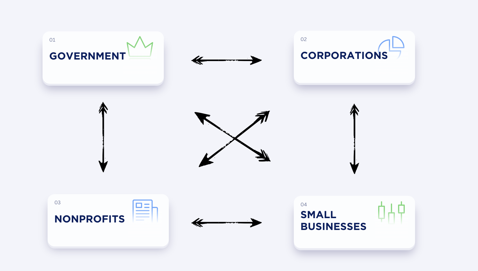 Government also buys, sells, funds, grants, and lends to businesses, nonprofits, and individuals.