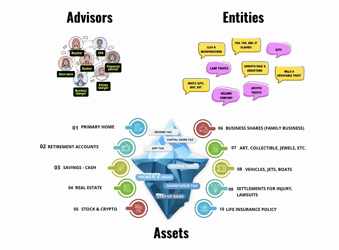 Identifies hidden taxes, probate traps, misaligned entities, and structural risk